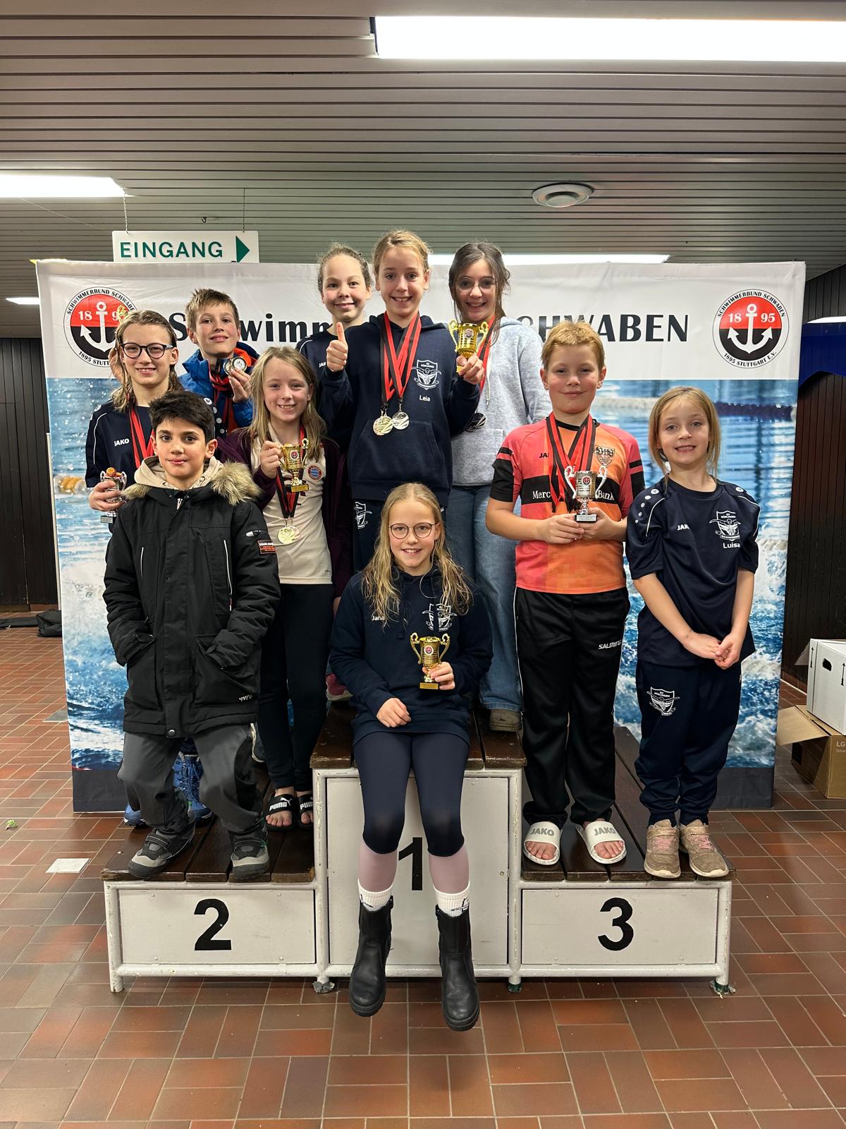 Beim Plieninger Adventsschwimmfest am letzten November-Wochenende haben die Böblinger Schwimmer:innen wieder fleißig Medaillen gesammelt. Am meisten aufs Treppchen klettern durften Jana Leber (Jg. 2015), Luna Johrden (Jg, 2014), Vincent Jakob (Jg. 2014), Edwin Weber (Jg, 2016) und Jannis Schmidt (Jg. 2012). Jana wurde Erste über die 50 Meter Rücken und Kraul und in der Mehrkampf-Wertung, Luna wurde Zweite über die 50 Meter Schmetterling und Brust. Vincent schlug über die 25 Meter Rückenbeine als Erster an, über die 50 und 100 Meter Rücken wurde er Zweiter, ebenso über die 100 Meter Rücken und in der Mehrkampf-Wertung. Edwin gewann über 50 Meter Brust. Jannis belegte den ersten Platz über die 50 Meter Rücken und Brust.